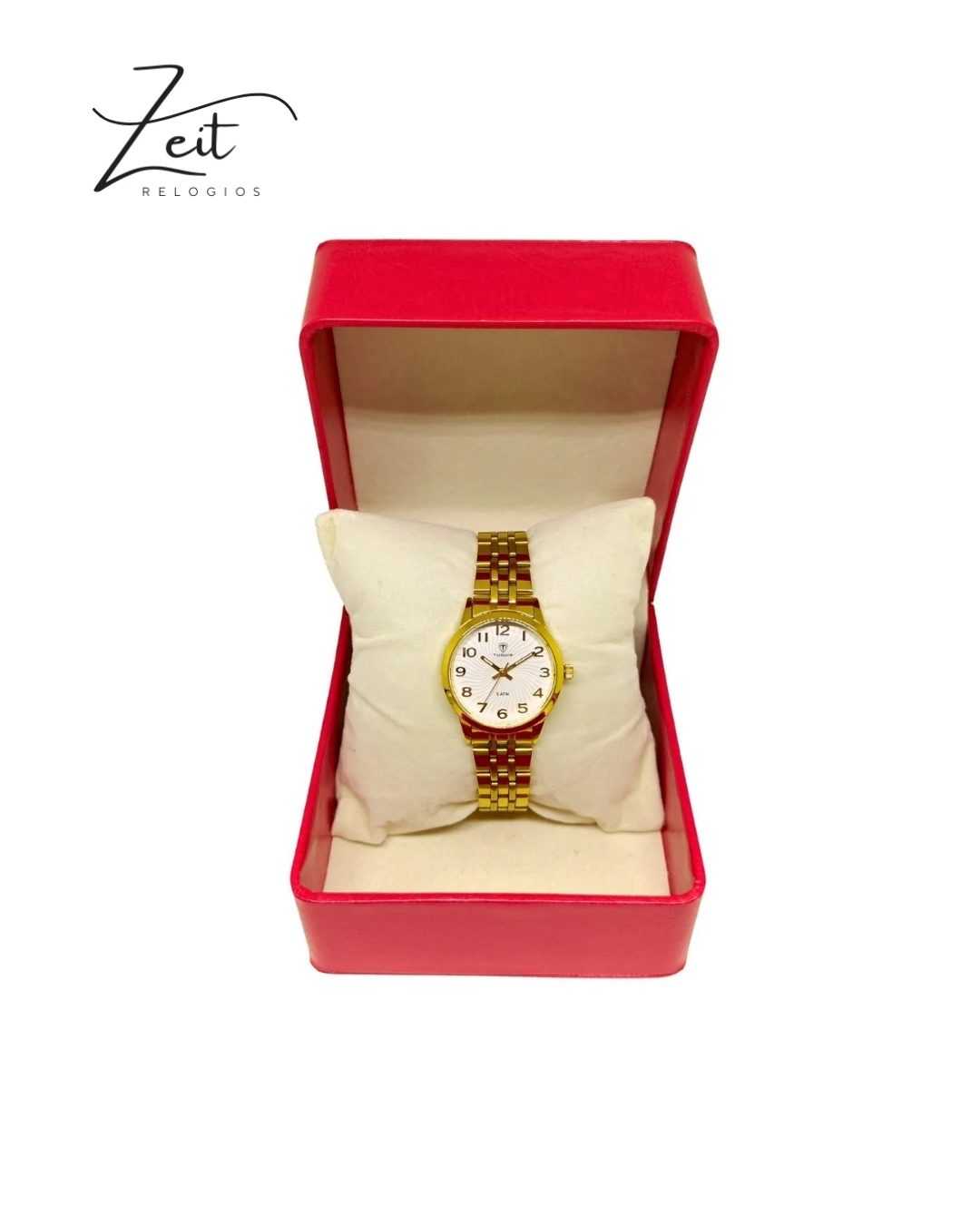 O Relógio ZEIT Elegance Gold combina elegância e sofisticação em um acessório clássico para mulheres.