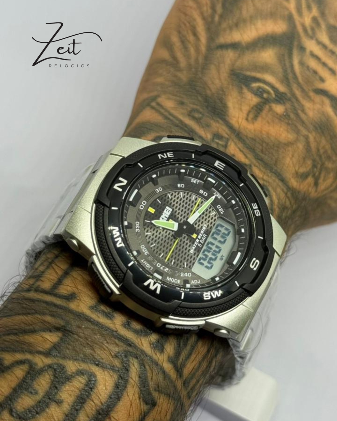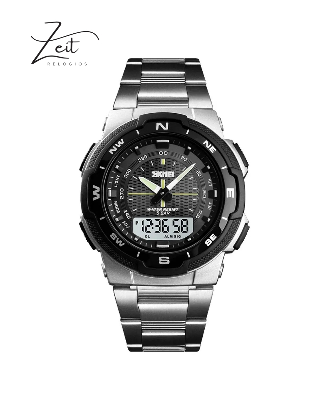 O Relógio ZEIT Fusion Silver combina design clássico com funcionalidades modernas para o dia a dia. Com acabamento prata e detalhes em preto, este modelo une estilo, versatilidade e durabilidade, ideal para qualquer ocasião.